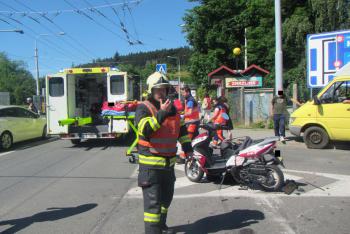 Řidič skútru naboural do auta před nemocnicí, taky v ní hned skončil
