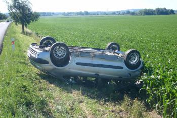 Poněkud zkažený začátek týdne. Řidička auto převrátila na střechu a zranila se