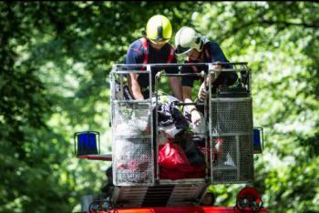 Ptáci to umí pořád lépe. Hasiči zachraňovali paraglidistu ze stromu na kopci u Oder