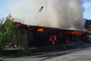 Uskladněné krmivo pro dobytek zcela shořelo, velká hala na seno taky