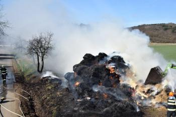 Zřejmě hra dětí s ohněm připravila hasiče o nedělní oběd a majitele slámy o peníze