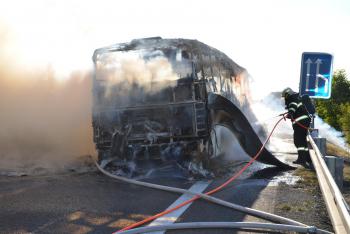 Na dálnici D7 nedaleko Brandýsku zcela shořel autobus, ke zranění osob nedošlo