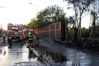 V Kbelské ulici hořela dřevěná protihluková stěna v délce dvaceti metrů