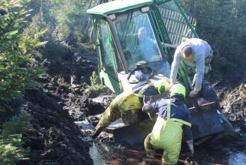 Na Tachovsku hasičský tank vyprostil z rašeliny dva lesní stroje (VIDEO)