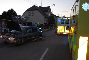 Auto při nárazu poničilo autobusovou zastávku, zůstali v něm dva zranění