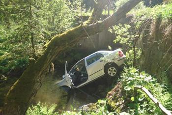 Auto skončilo v potoce, jedna osoba skončila v péči záchranářů