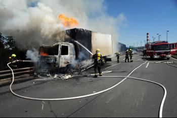 Hořící kamion na pražské Jižní spojce zcela zablokoval dopravu (VIDEO)