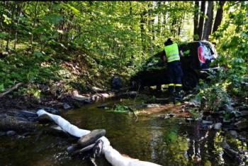 Bizon vyprošťoval auto z potoka v Čeladné i kvůli rybím sádkám