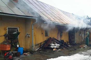 Střechu hospodářského přístavku ve Věrovanech požíral požár