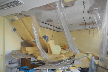 Školáci si mají o čem povídat. Ve sborovně se zřítila část stropního podhledu