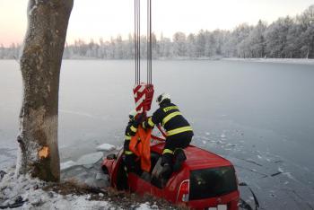 Silvestrovská studená koupel. Řidička sjela autem do rybníku