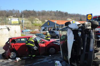 Apríl to nebyl. Po nehodě tří aut v Kolbenově ulici čtyři zraněné osoby