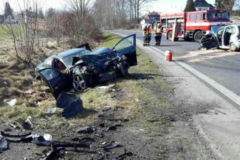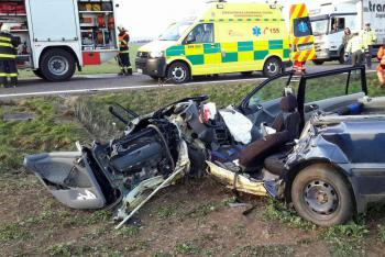 V obci Kočí se čelně střetl kamion s osobním vozem. Hasiči vyprošťovali řidiče