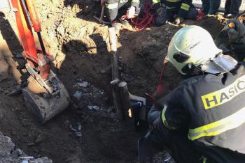 Pozdvižení v obci Senička. Hasiči vyproštovali zavaleného muže z výkopu (VIDEO)