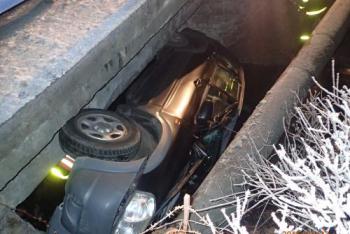 Hasiči vytahovali mazdu z potoka, vůz se navíc zaklínil pod mostem