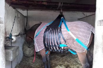 Záchranná síť na koně v ostré akci. Kobylce pomohla zpět na nohy