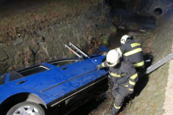 Ranní předvánoční koupel. Osobní vozidlo skončilo v korytě potoku