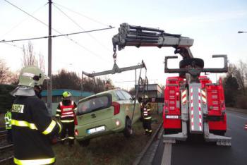 Ostravští hasiči vyprošťovali řidičku i její vůz, opět zasahoval Bison