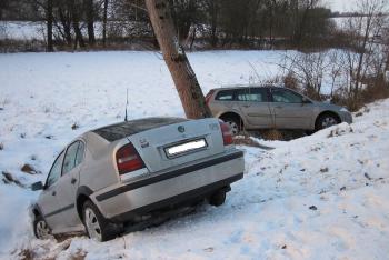 Mrazivé ráno se štěstím přežili tři řidiči. K nehodám napomohl led na silnici