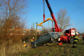 Předvánoční koupel je zřejmě v oblibě. Hasiči vyprošťovali automobil z koryta řeky
