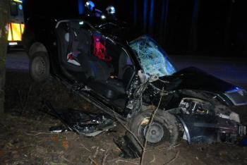 Sobotní ráno: Náraz auta do stromu a zaklíněná dáma na kolejích