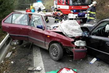 Ze zdemolovaného auta v Dolním Újezdu vyprostili hasiči dvě osoby