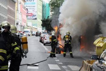 V Praze hořela auta, hrozil výbuch tlakových láhví i kanystrů s benzínem