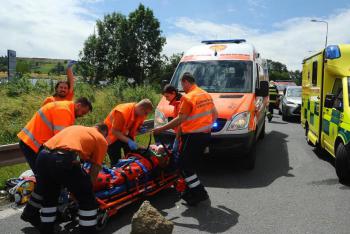Auto vyletělo ze silnice a dopadlo na jiný osobní vůz. Kolize zranila tři osoby