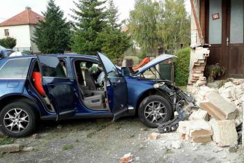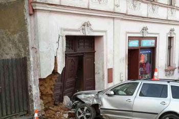 Auto po havárii poškodilo rodinný dům, ten musel zkontrolovat statik
