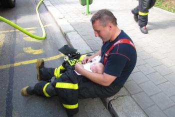 Požár v koupelně havířovského bytu, hasič se vzorně staral o miminko
