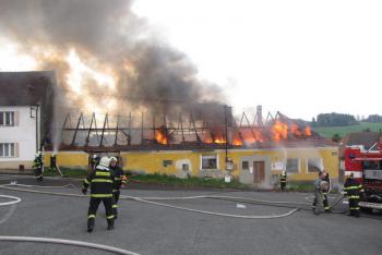 Při požáru domu v Plánici propadl hasič stropem, je mimo ohrožení života
