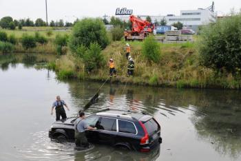 Že by jen nutná sobotní koupel? Auto skončilo v Čestlicích v retenční nádrži