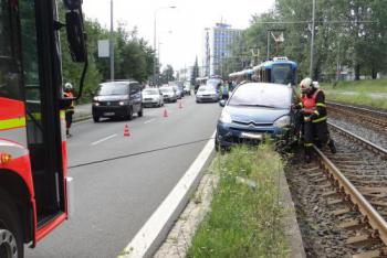 Ostravští hasiči velmi rychle vyprostili auto z kolejí tramvajové dráhy
