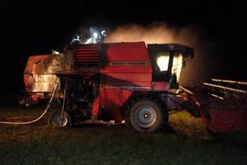 Další kombajn v plamenech. Tentokrát u Krásného Dvora na Lounsku