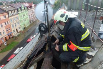 Blesk zapálil střechu domu v Karlových Varech, hasiči reagovali rychle