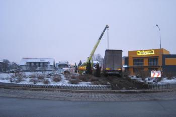 Chtěl si snad zkrátit cestu? Kamion vjel do středu kruhového objezdu
