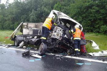 U Štoků se střetl kamion s náklaďákem. Nehoda si vyžádala jedno zranění
