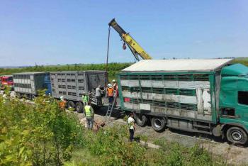 Kamion převážející prasata blokoval D1, několik desítek se jich potulovalo po okolí