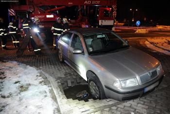 Zrádná vozovka. Oktávka se propadla do vodou podemleté díry