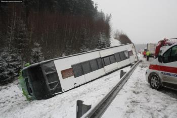 Dálnice D5: Nehoda dvou kamionů, autobusu a pět zraněných