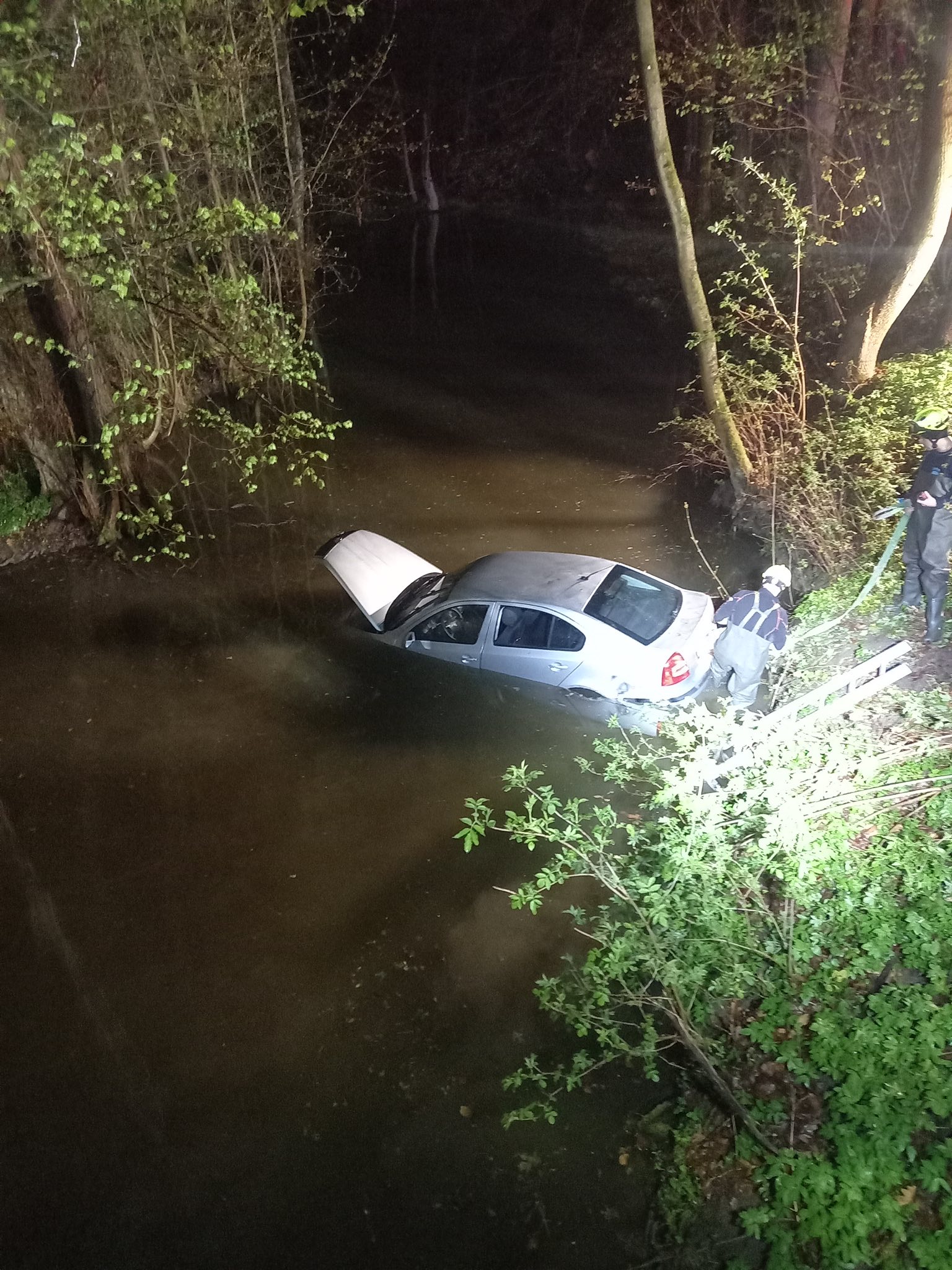 Večerní zásah hasičů u dopravní nehody osobního vozu v Kostelci nad Orlicí, kde automobil vyjel mimo komunikaci a skončil v náhonu ve stojaté vodě v hloubce asi jednoho metru. Nehoda se obešla bez zranění, řidič se dostal sám mimo havarovaný vůz.