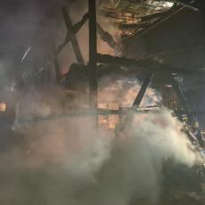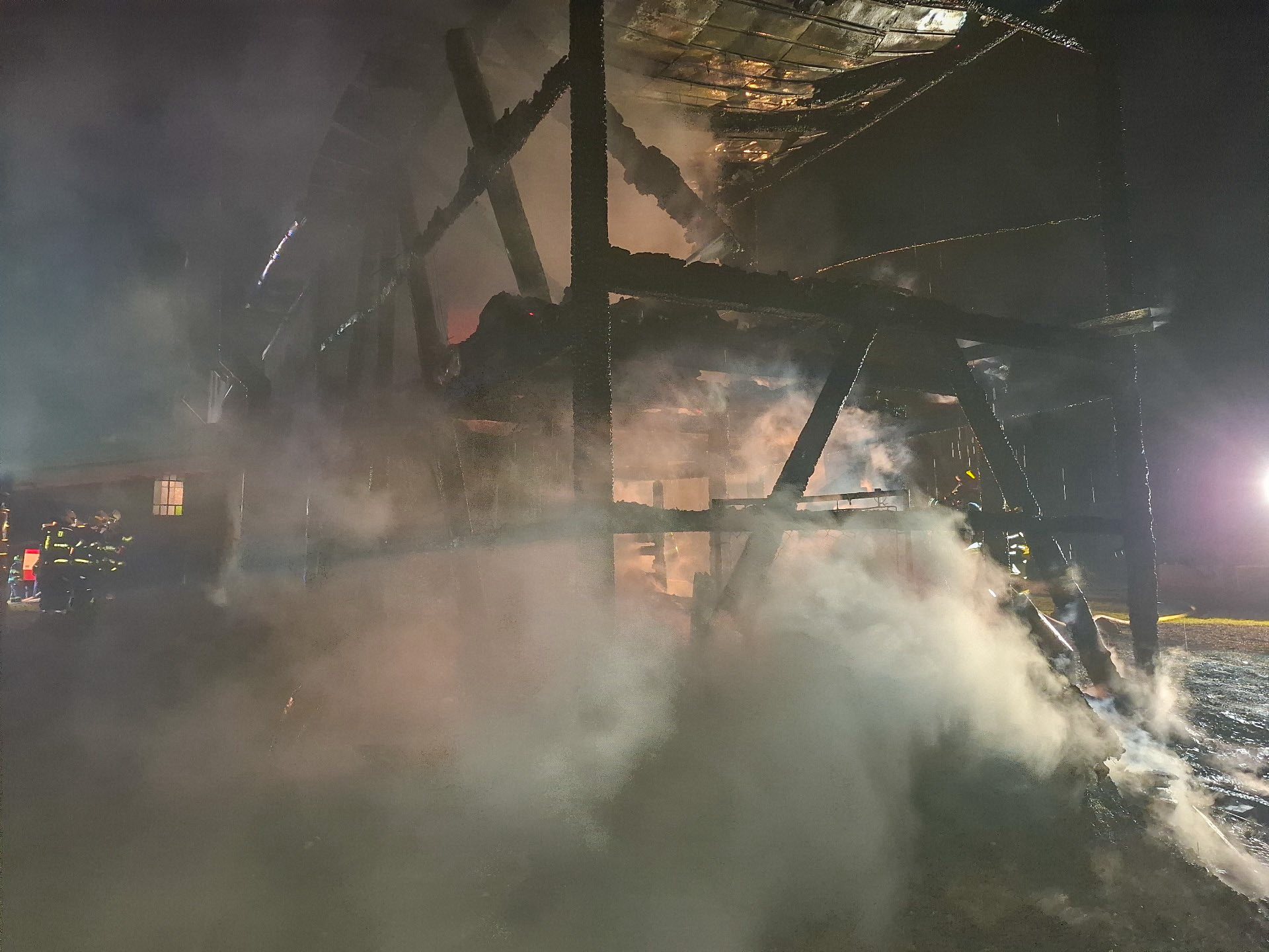 Vlivem požáru došlo ke zhroucení části konstrukce.