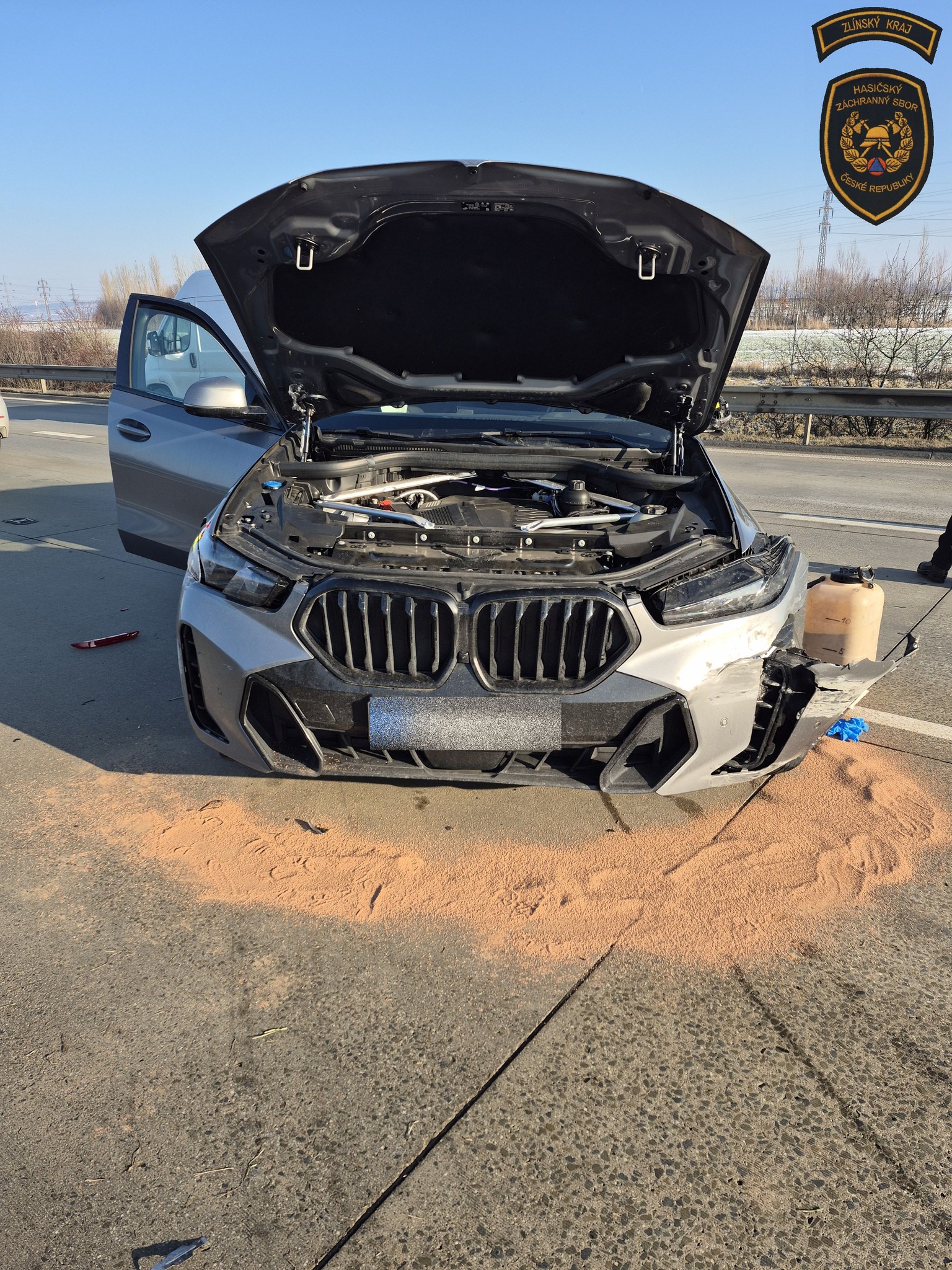 V pondělí dopoledne zasahovali profesionální hasiči ze stanic Kroměříž, Otrokovice a Holešov u dopravní nehody jednoho osobního vozidla, které havarovalo u obce Pravčice na Kroměřížsku na silnici D55 ve směru na Přerov.