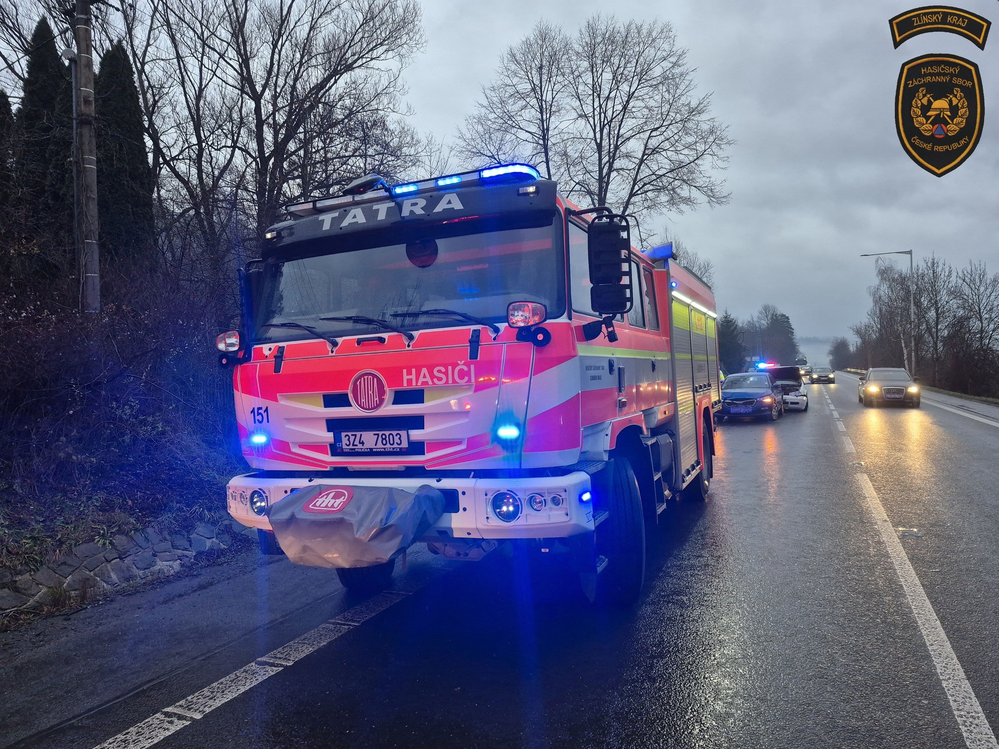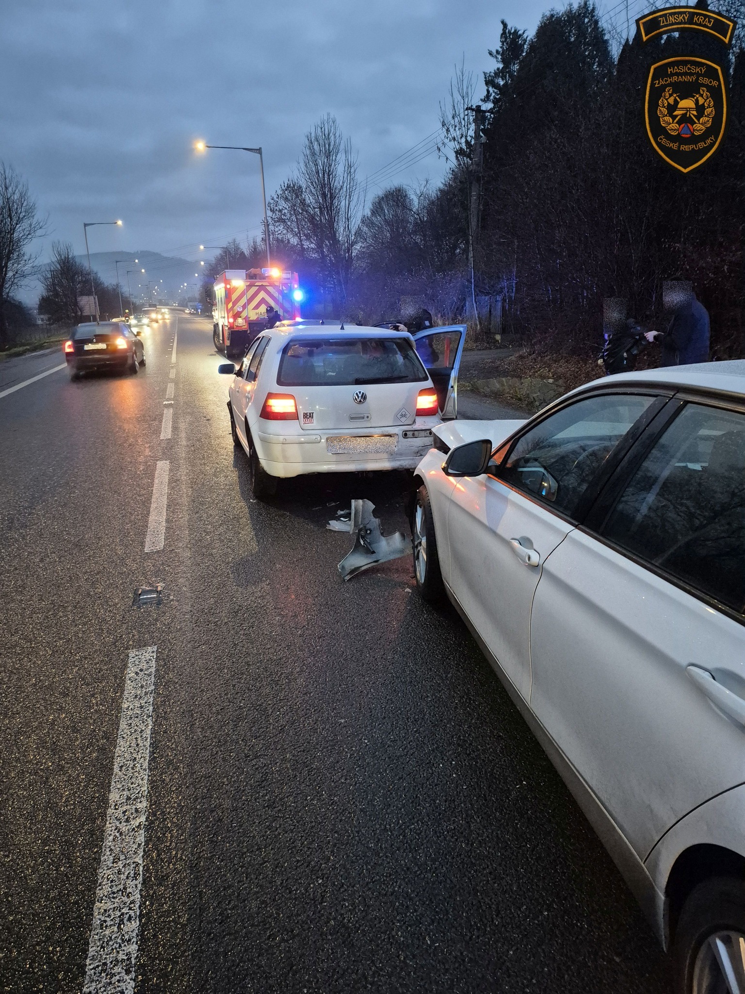 Na místo okamžitě vyrazila jednotka profesionálních hasičů ze stanice Vsetín. Ve vozidlech cestovalo celkem pět osob včetně dětí. Díky šťastné shodě okolností všichni účastníci události vyvázli bez zranění.