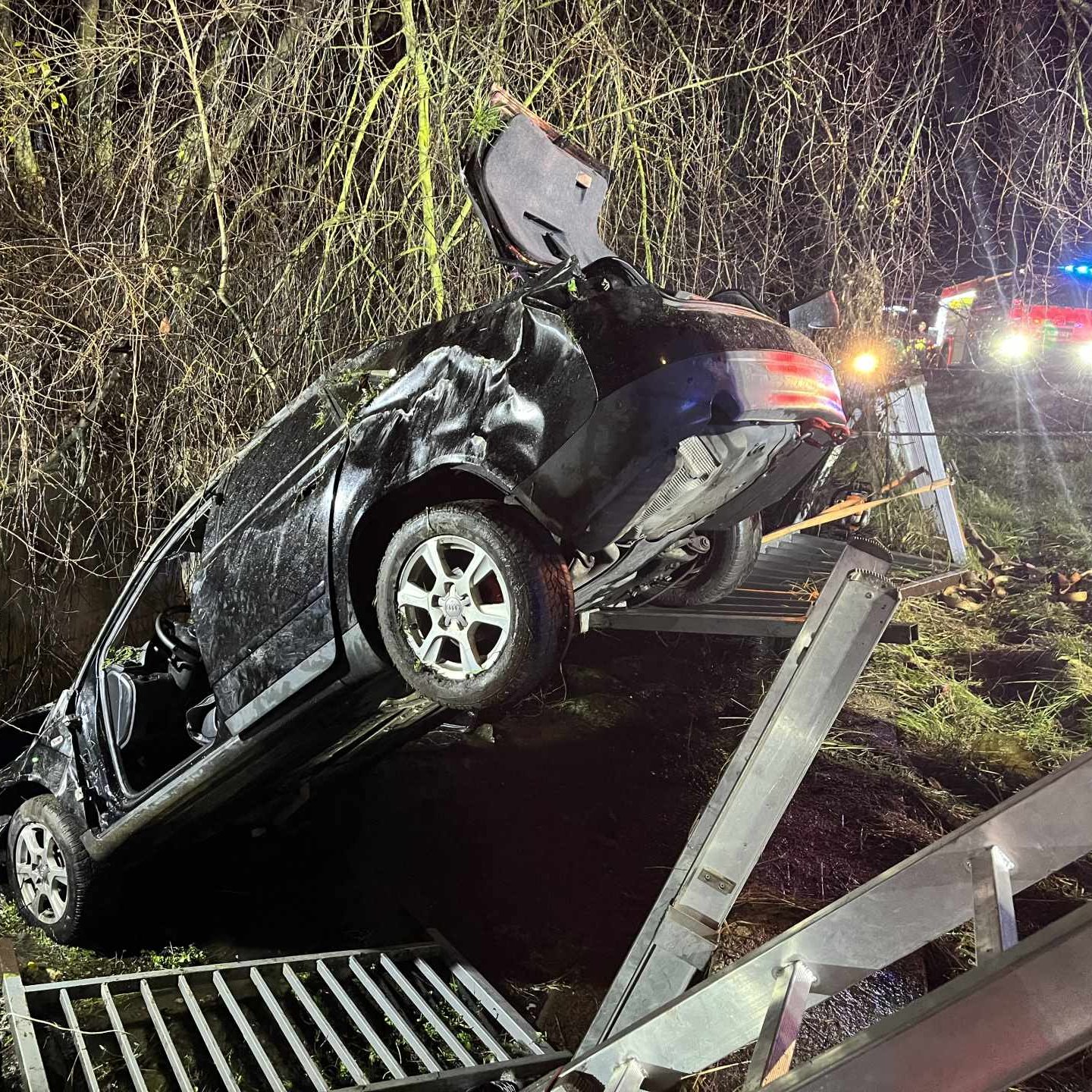 Po dobu zásahu složek integrovaného záchranného systému byla silnice I/13 uzavřena. K vytažení vozidla z koryta potoka hasiči použili těžký vyprošťovací automobil.