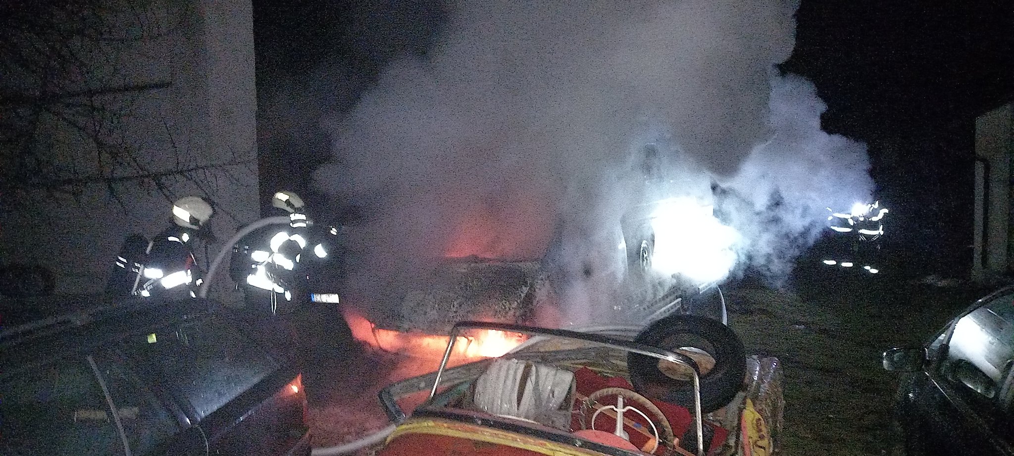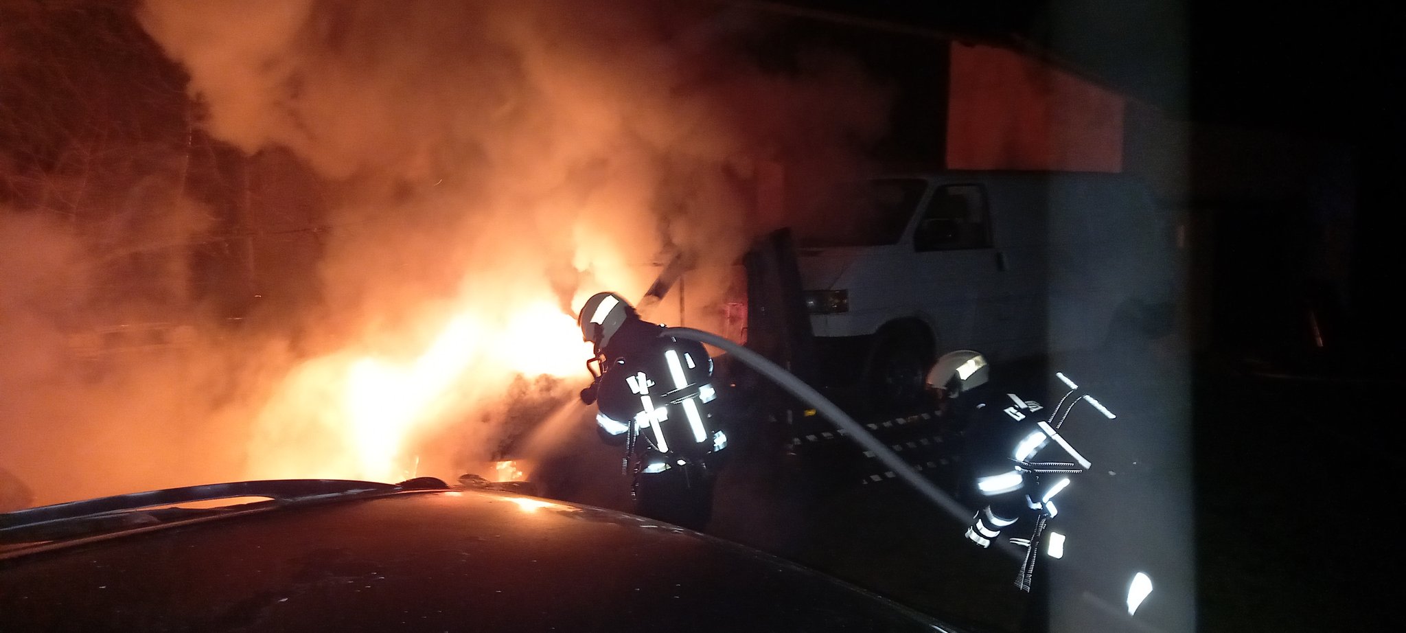 K prvnímu požáru vyráželi hasiči před devátou hodinou večerní do obce Krásnice (Praskačka). V plamenech se nacházelo odtahové vozidlo i s naloženým automobilem (foto 1, 2). Uhašeno bylo zhruba za tři čtvrtě hodiny, požárem však byla poškozena i okolo stojící vozidla. Předběžná škoda dosahuje čtvrt milionu korun. Příčina je v šetření. Zasahovaly obě hradecké profesionální jednotky a dobrovolná jednotka ze Lhoty pod Libčany.
