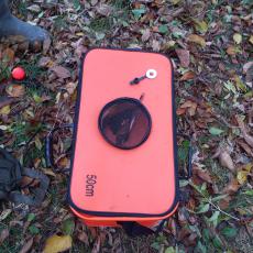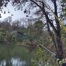 Pomocí rybářského podběráku se hasičům podařilo ptáka bezpečně vyprostit. Zachráněnou sojku poté umístili do rybářského boxu.