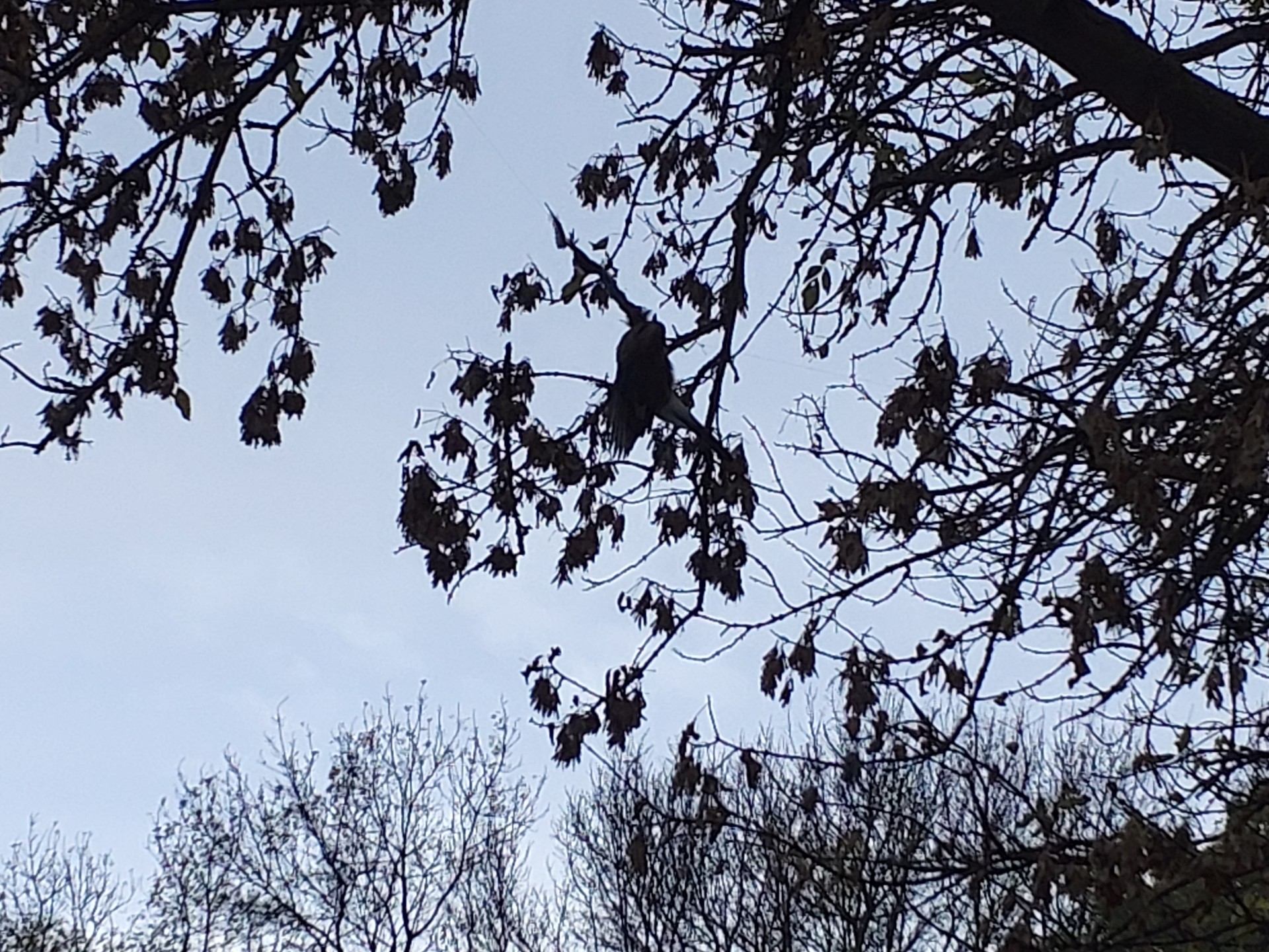 Na stromě ve výšce asi 7 metrů uvízla sojka, která se zamotala do pletiva.