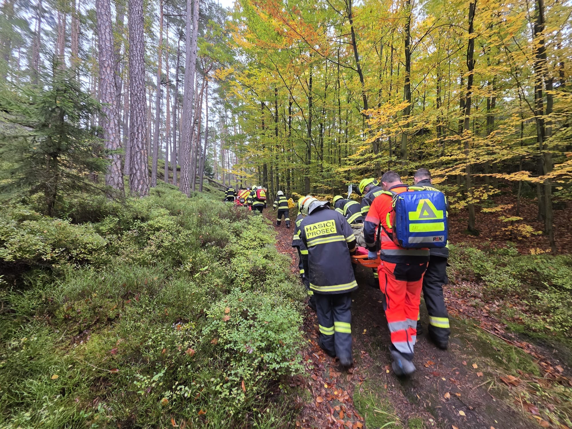 Následně hasiči z Proseče a Budislavi zajistili transport zraněného z nepřístupného terénu. Pomocí nosítek byl pacient přenesen přibližně 200 metrů k zásahovému vozidlu.