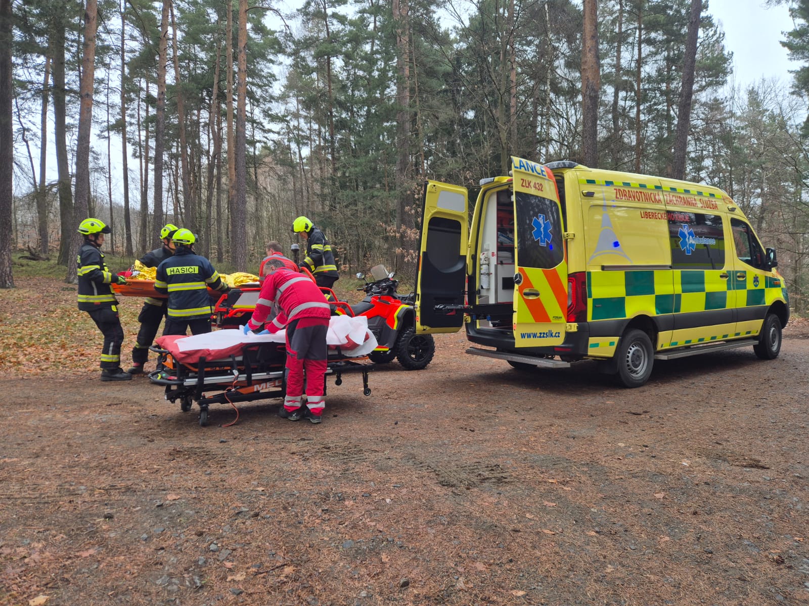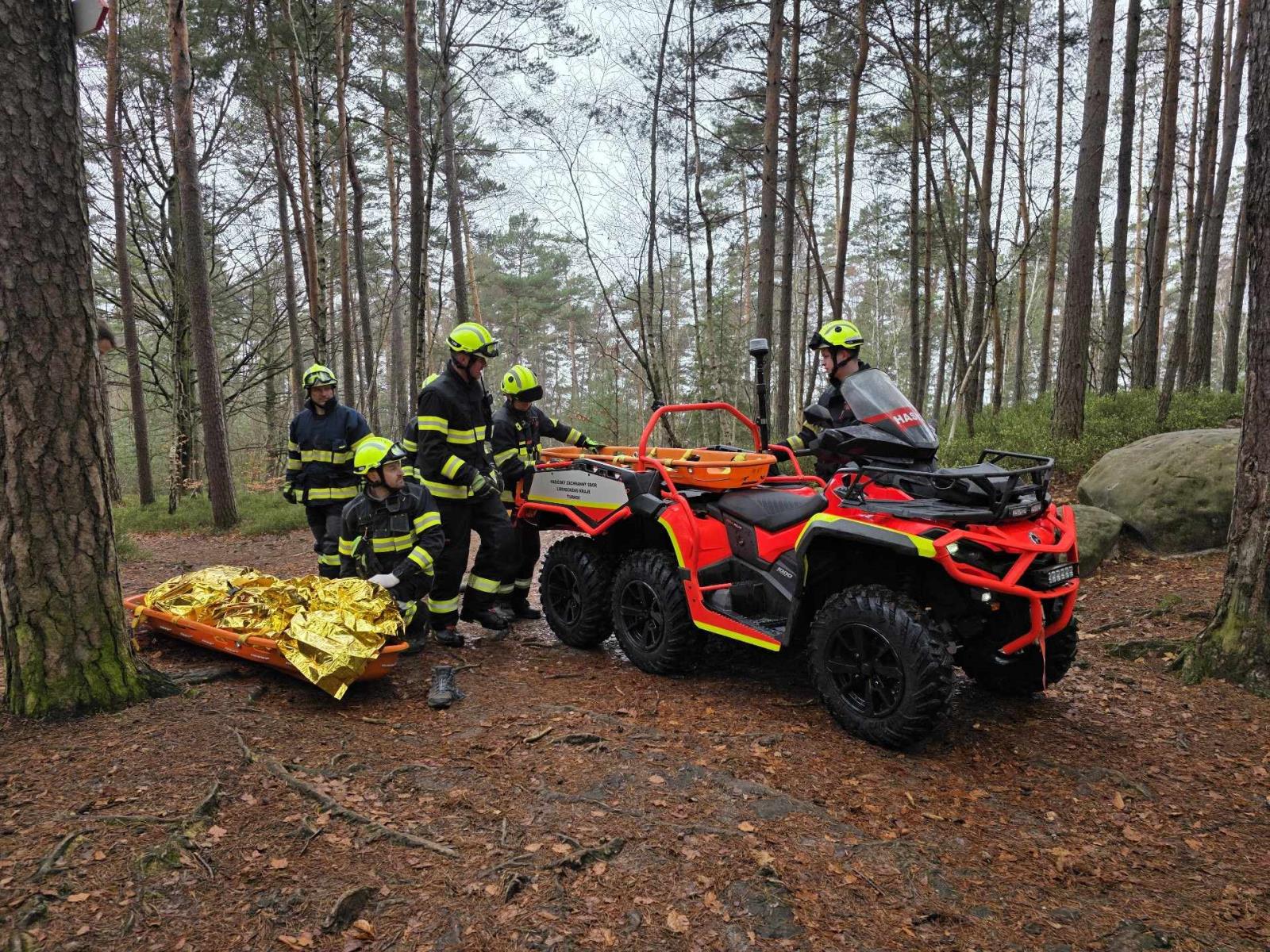 Hasiči se ZZS LK spolupracovali při poskytnutí první pomoci ženě a poté ji bezpečně uložili a zajistili ve speciálních nosítkách. Zároveň pomocí izotermické fólie zabezpečili, aby zraněná měla během přepravy tepelný komfort. Následný transport osoby šestikolkou až k sanitnímu vozu na vzdálenost přibližně kilometru zabral hasičům asi 10 minut a opět potvrdil, jaké využití při záchraně tato speciální technika má.